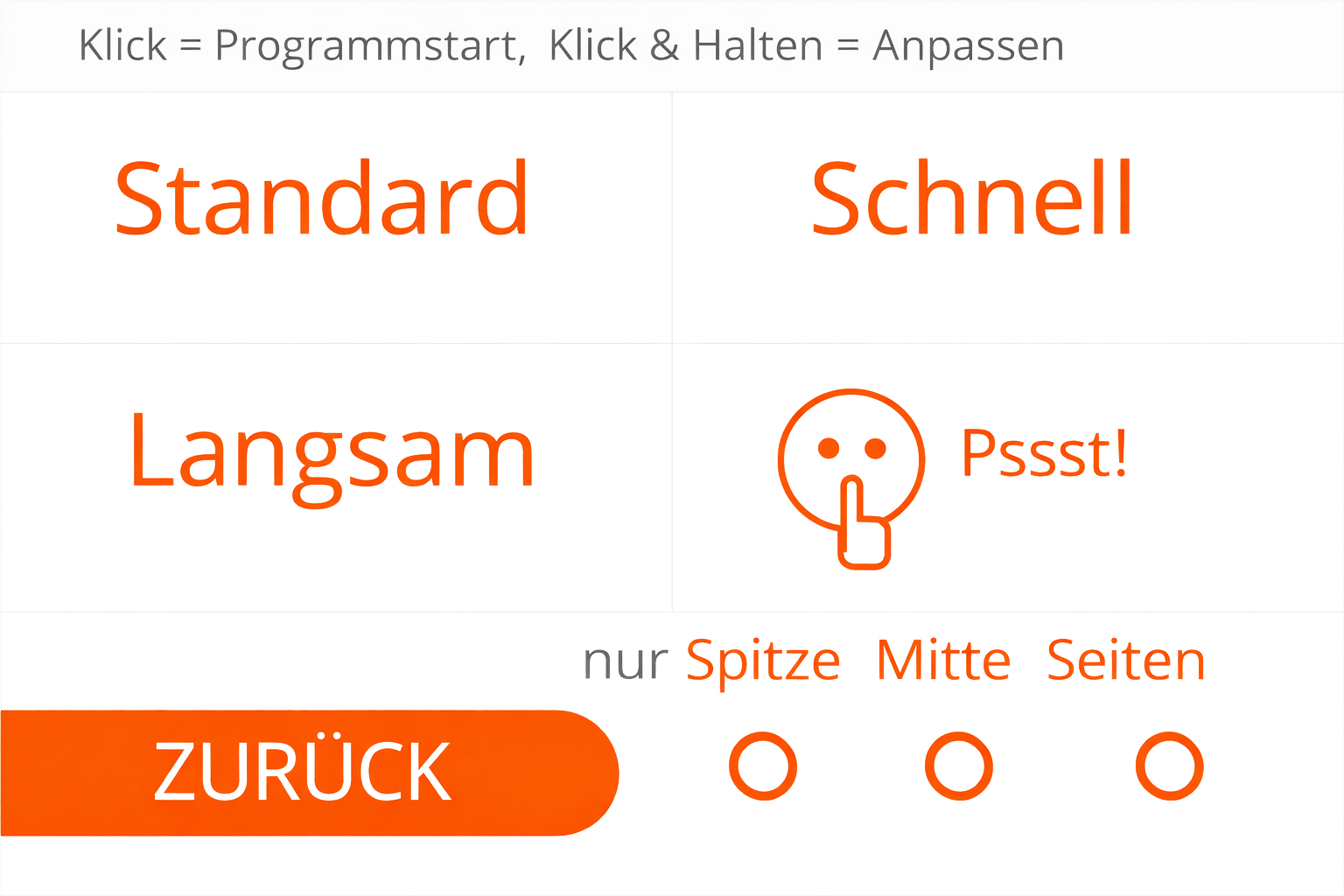 Vom leisen Hobeln in einer ruhigen Abendstunde bis zum schnellen letzten Schliff kurz vor der Probe . Sie bestimmen das Tempo. Ob Spitze, Seiten oder Mitte: Auch das legen Sie ganz einfach per Auswahl fest.