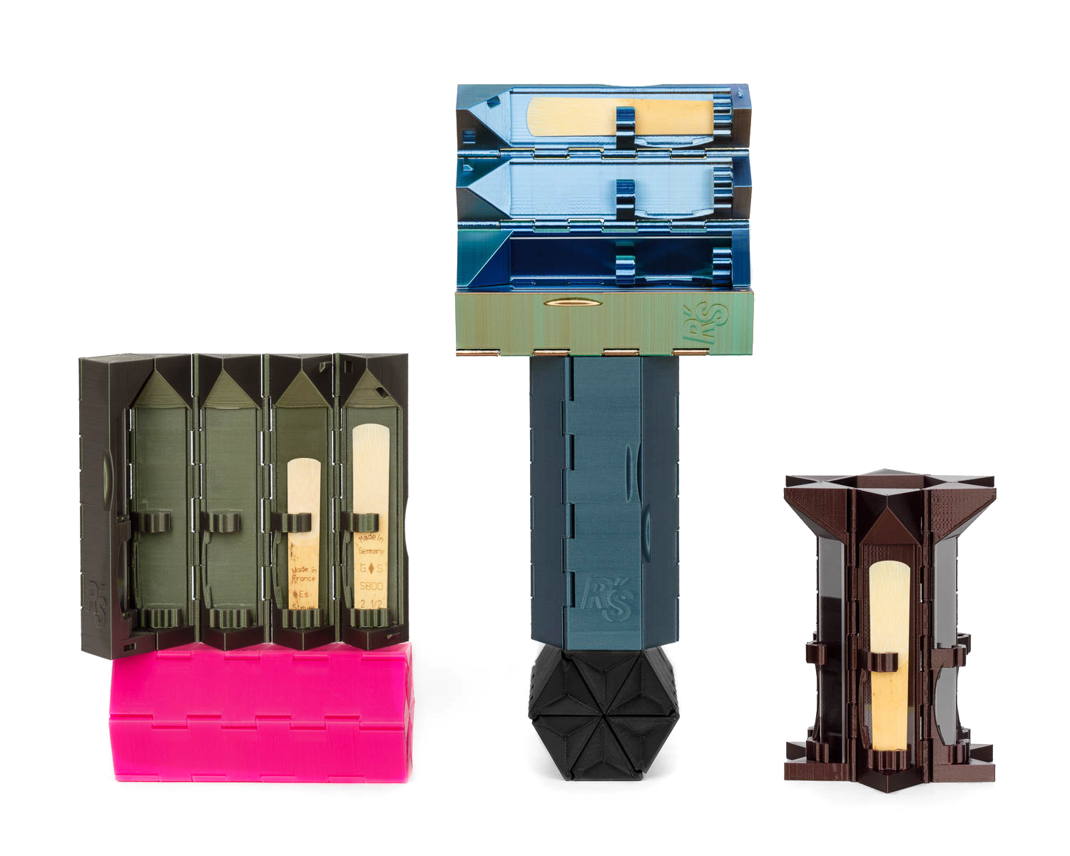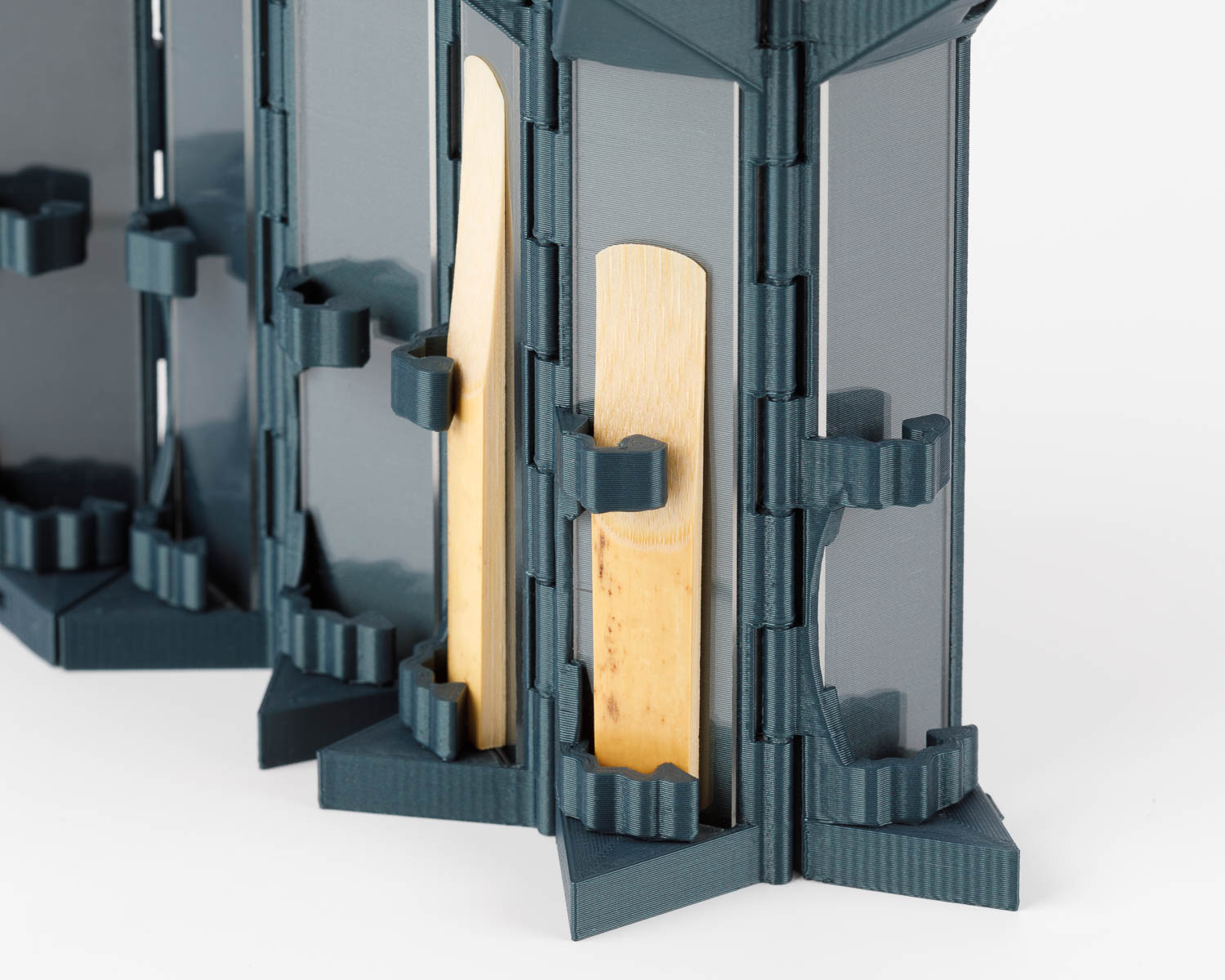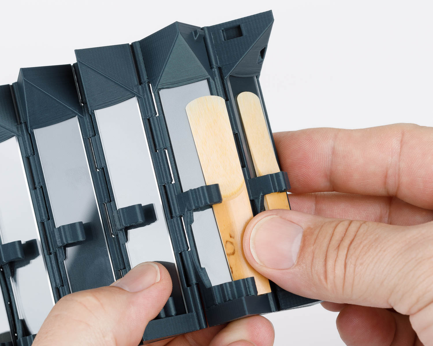 Designed with both style and function in mind, the HEXAGON case is the perfect way to store your clarinet reeds. The case has been 3D-printed in one piece and the integrated hinges and clips allow your reed to be inserted and removed easily while keeping the reeds securely in place.