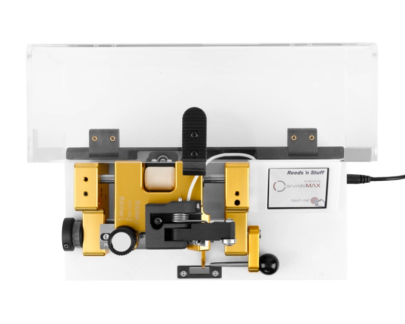 The Tip Profiler ARUNDOMAX takes the repetition out of reed-making and puts the precision in your hands. Place your reed on the machine, select one of your saved presets on the touchscreen, close the lid – and watch it work. When the green screen smiles back at you, the profiling is done.