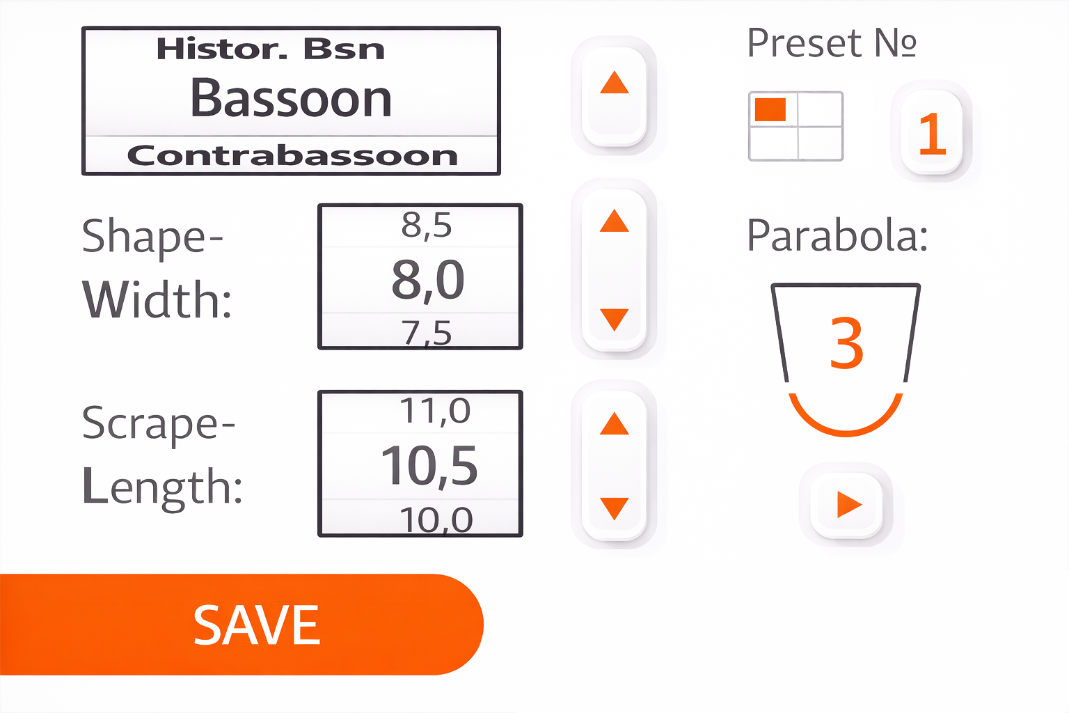 Scrape width, length, and shape – everything that defines how your reed plays is adjustable directly on the touchscreen. Dial in your signature sound and save it as a preset. The next time you sit down to make reeds, it's already waiting for you.