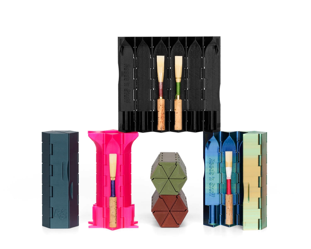 Designed with both style and function in mind, the HEXAGON case is the perfect way to store your oboe reeds securely. The case has been 3D-printed in one piece and the built-in magnets allow it to be effortlessly opened and closed.